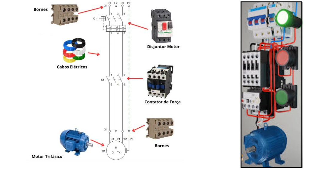 Uma chave de partida direta é composta fundamentalmente por dois componentes acoplados física e eletricamente: