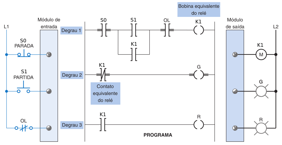 Ao utilizar um Controlador Lógico Programável, a lógica de fiação física é substituída pela lógica programada (software).