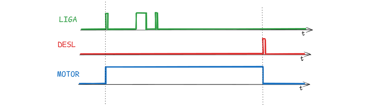 - Controle de Nível de Tanques: Em um sistema de caixa-d'água, se o sensor de nível máximo for atingido, a bomba de descarga é ativada via SET para esvaziar o tanque. Ela permanece ligada até que o sensor de nível mínimo seja acionado, ativando a instrução RESET para desligar a bomba.